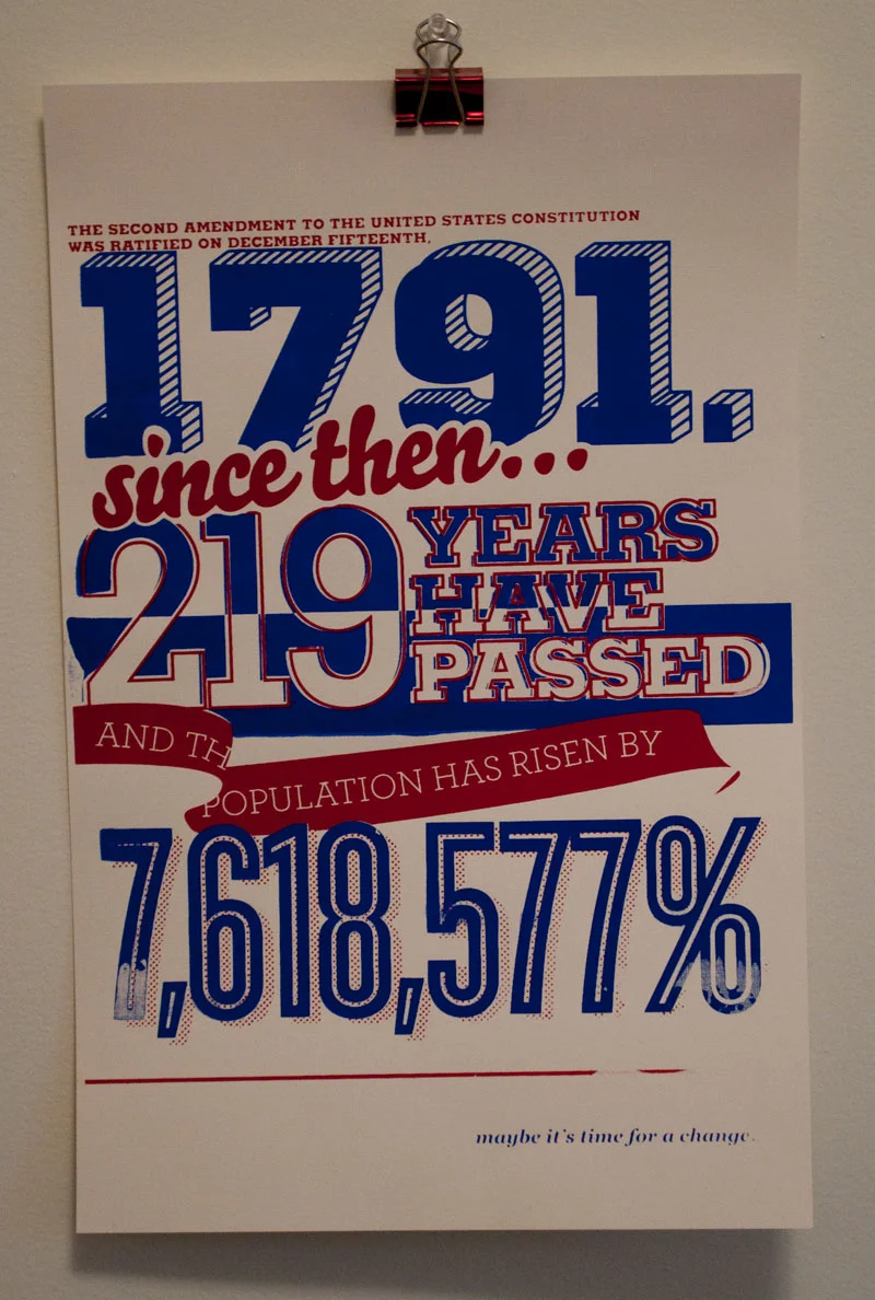 Check out this awesome poster designed & screen printed by my good friend Andy Richardson! Caption Reads, “I made this 1791 print over the weekend. I was thinking about people’s affinity with the second amendment and when that was brought about. I’m not really set on one way or the other, but found this information pretty interesting.”