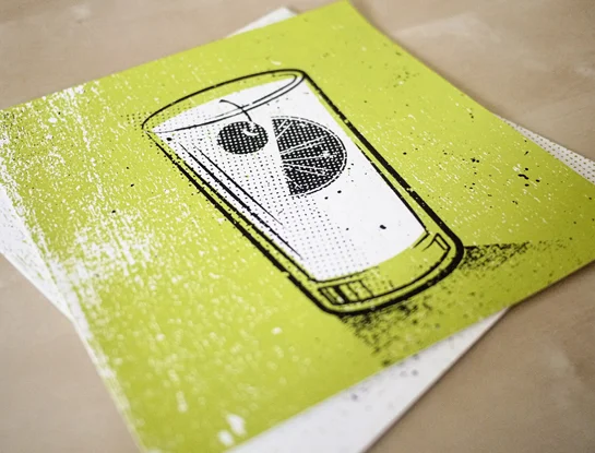 who says, “this drink’s on me.”Details: 8″ x 8″ - 2 Color - French Madero Speckletone