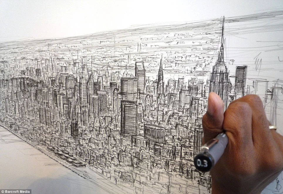 Autistic artist Stephen Wiltshire draws spellbinding 18ft picture of New York from memory… after a 20-minute helicopter ride over city